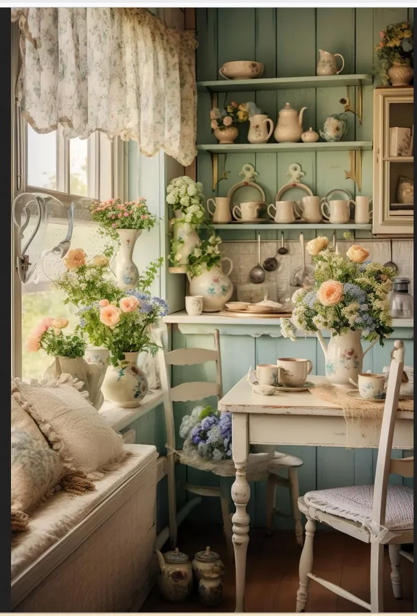 This is where thrifting becomes your best friend. Cottagecore kitchens don’t look like they were decorated in one weekend—they evolve.