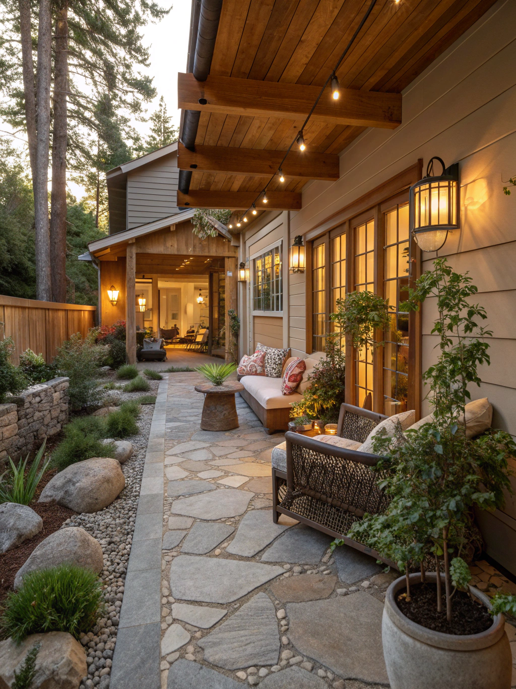 Consider the weather at all times. If you want to lounge through rain or shine, think about some form of coverage—a stylish umbrella or a trellis with climbing vines. I can tell you firsthand that nothing ruins an outdoor moment quite like a surprise downpour.