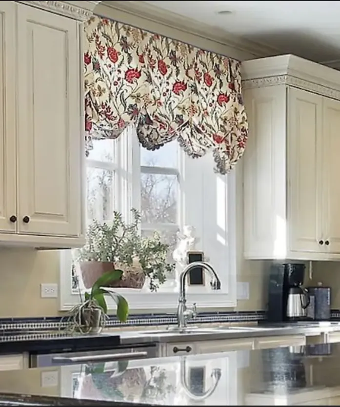 Kitchens = grease, steam, and the occasional sauce splatter. Choose washable fabrics if your valance is near the stove.