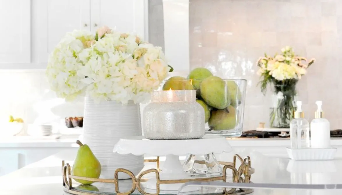 The fruit bowl is classic for a reason. A white ceramic bowl with lemons, limes, or apples adds color. Pro tip: stick to one or two types of fruit so it looks curated, not like a sad collection of bruised produce. I once tried a “tropical mix,” and it looked like a grocery aisle exploded on my counter.