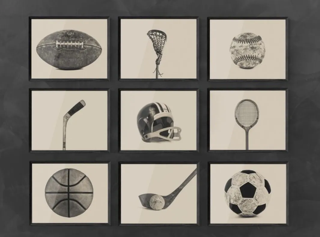 Retro sports posters: Think vintage Olympics or World Cup prints (Etsy is a goldmine for affordable downloads).