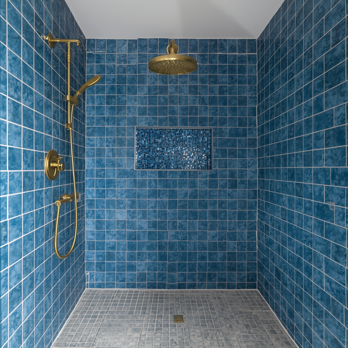 Walk-In Shower Ideas With Blue Tile That Feel Modern, Not Trendy